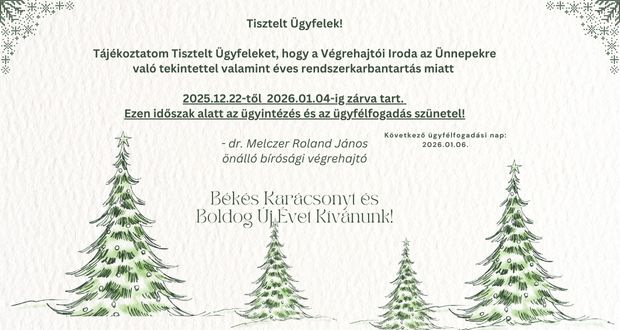 Dr. Melczer Roland János önálló bírósági végrehajtó vagyok..